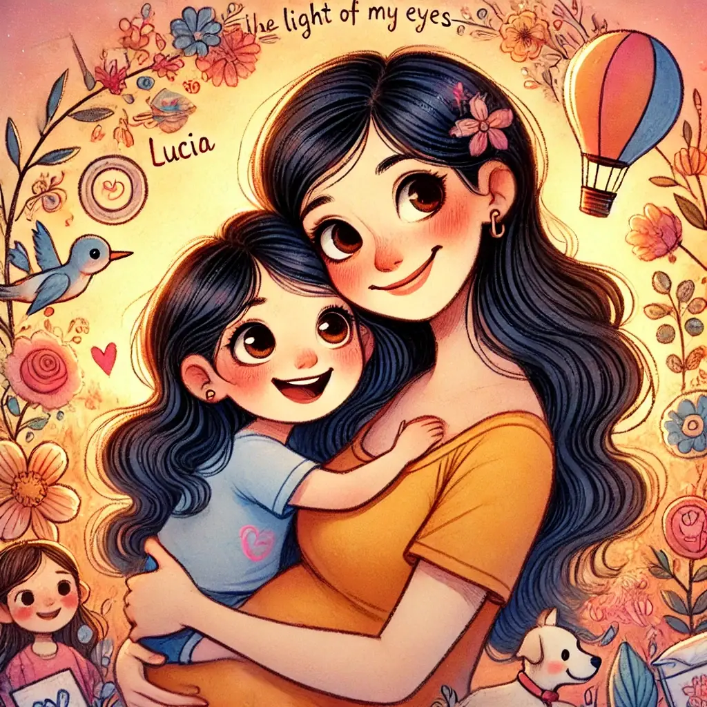 Érase una vez una pequeña niña llamada Lucía, que vivía en un colorido y alegre pueblo rodeado de montañas y flores de todos los colores. Lucía era una niña muy curiosa y llena de energía, siempre explorando su entorno con su sonrisa brillante que iluminaba a todos a su alrededor. Tenía una madre que la amaba profundamente y siempre le contaba historias hermosas sobre el amor y la amistad.